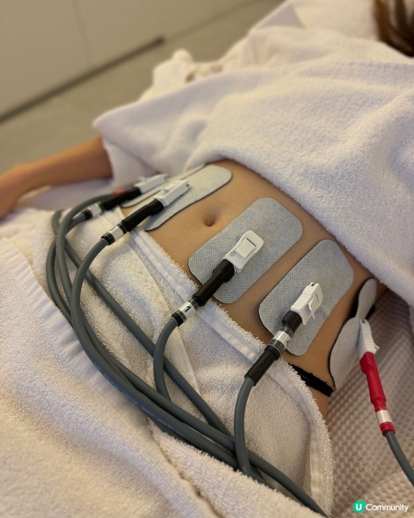 💬 呢個療程會將好多塊pad連同電線接駁儀器機,再透過儀器機唔同強度嘅電波去刺激大髀同腹部肌肉嘅收縮,完全唔會感覺到痛楚,只會感覺到輕微嘅電波震動,成個療程就好似瞓喺度當肌肉做運動咁
