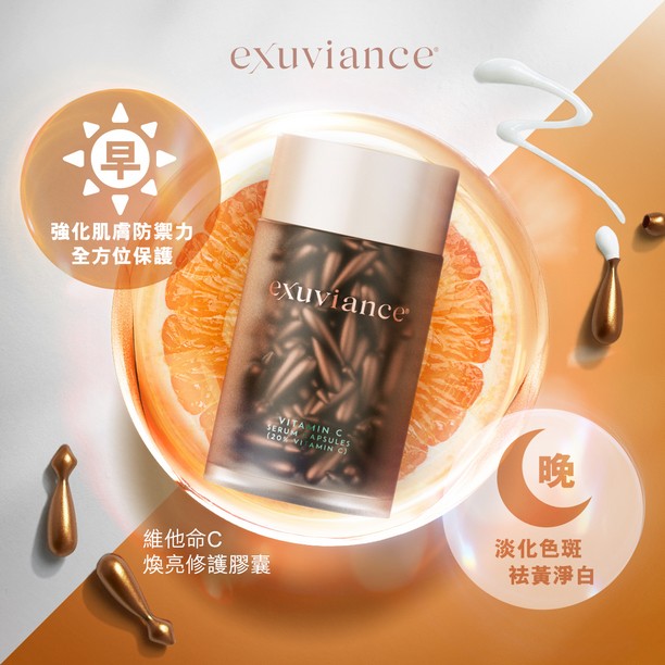 - 維他命C能均勻及提亮膚色,減淡色斑,改善膚色不均,締造容光煥發狀態