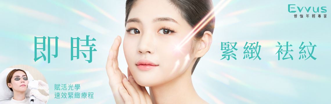 Evvus賦活光學速效緊緻療程採用強化雙脈衝光學技術,1秒間釋出多達20個子脈衝,精準、穩定深入肌底,即時收緊肌膚,減淡深刻細紋及皺紋,並促進膠原蛋白持續新生,讓肌膚重拾飽滿幼滑,長效緊緻年輕;另配合獨特水晶冷凍技術,療程時安全舒適,肌膚倍享溫感無痛。